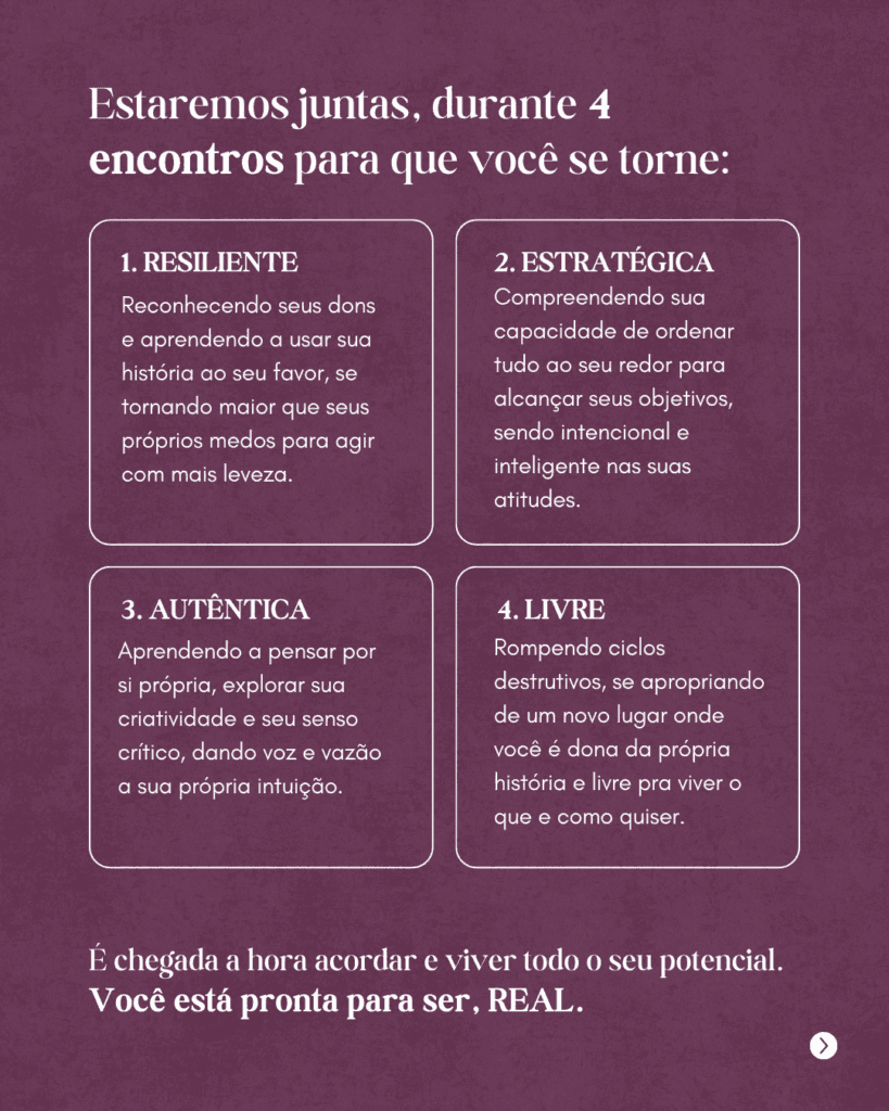 Uma jornada que vai te guiar rumo ao despertar do seu potencial, desbloqueando seus medos, crenças e tudo o que te impede de crescer. Os primeiros passos para o seu autoconhecimento, merecimento e auto amor.